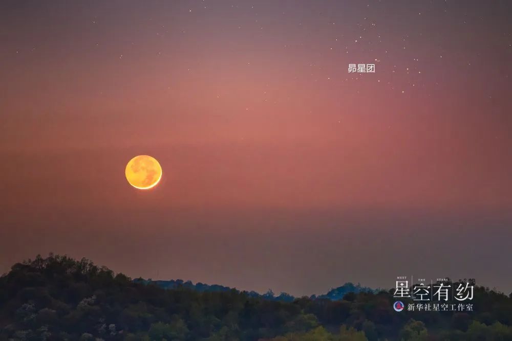 陕西星空摄影爱好者王添玮2022年5月2日在陕西宝鸡关山牧场拍摄的昴星团伴月。(本人供图)