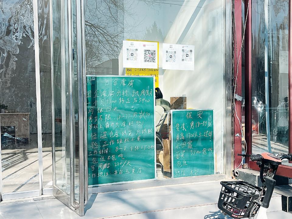 沿着马驹桥商业街,大大小小的劳务门店门口都张贴着招工启事,很难看到有低于200元/天的日结工招聘。