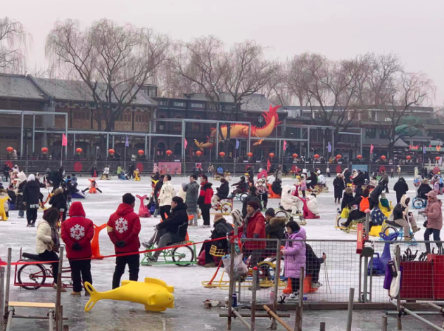 “什刹海冰场就在地铁站附近,下了车不用走太远,名气又大,所以我们每年都来。”李女士说,很多游客看着热闹也来一起玩了。
