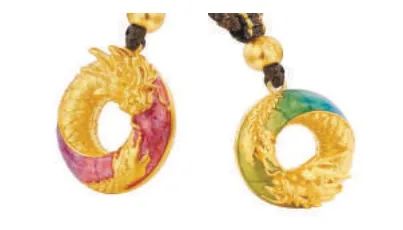 同时结合珐琅工艺制作而成,珐琅的颜色参考九龙壁的颜色烧制而成,颜色艳丽、龙型精美,而平安扣造型的整体设计符合传统审美与吉祥的寓意,广受市民游客的追捧和欢迎。