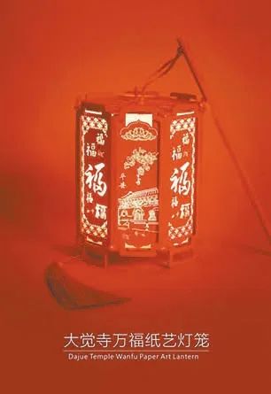 万福纸艺灯笼精心选取大觉寺山门、白塔、钟楼等建筑为设计元素,设计为镂空的红色纸雕灯笼,既趣味又喜庆,可悬挂亦可手持。纸雕为平面产品,需手工拼插才可创作完成,既可以练习动手动脑能力,又可以感受创作的过程和享受创作的成果,是集赏玩和益智多功能于一体的文创产品,还具有实用价值,尤其是在节庆期间,增添喜庆氛围。