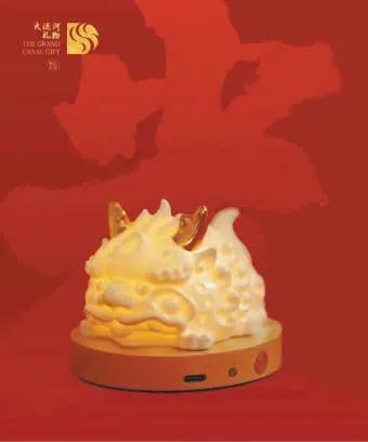 产品采用国家级非遗德化白瓷工艺,如玉质般温润,造型来自龙生九子之一的趴蝮,有镇水、镇宅的祈福寓意,也是大运河的吉祥物,整体造型具有东方神韵,龙角使用描金工艺。触摸式无级调光,可以作为氛围灯使用,灯光开启后更加具有艺术气息。