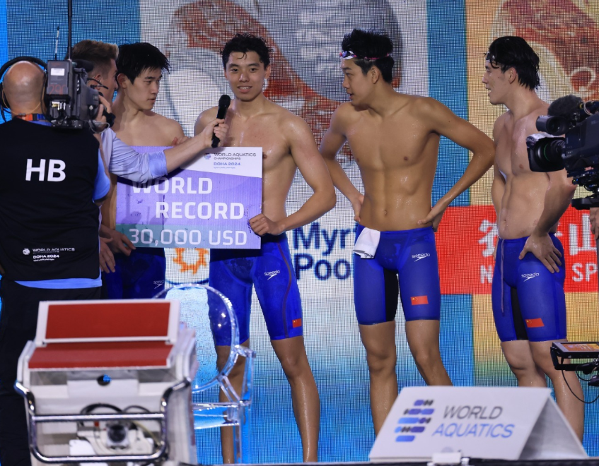 中国队夺冠世锦赛男子4x100米自由泳接力,潘展乐破世界纪录
