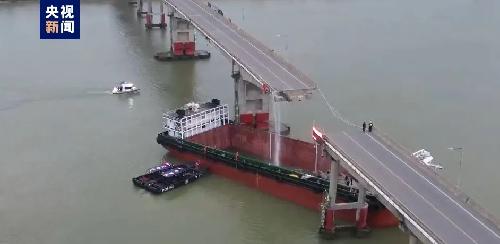 广州南沙一大桥被船只撞断 2人死亡 3人失联