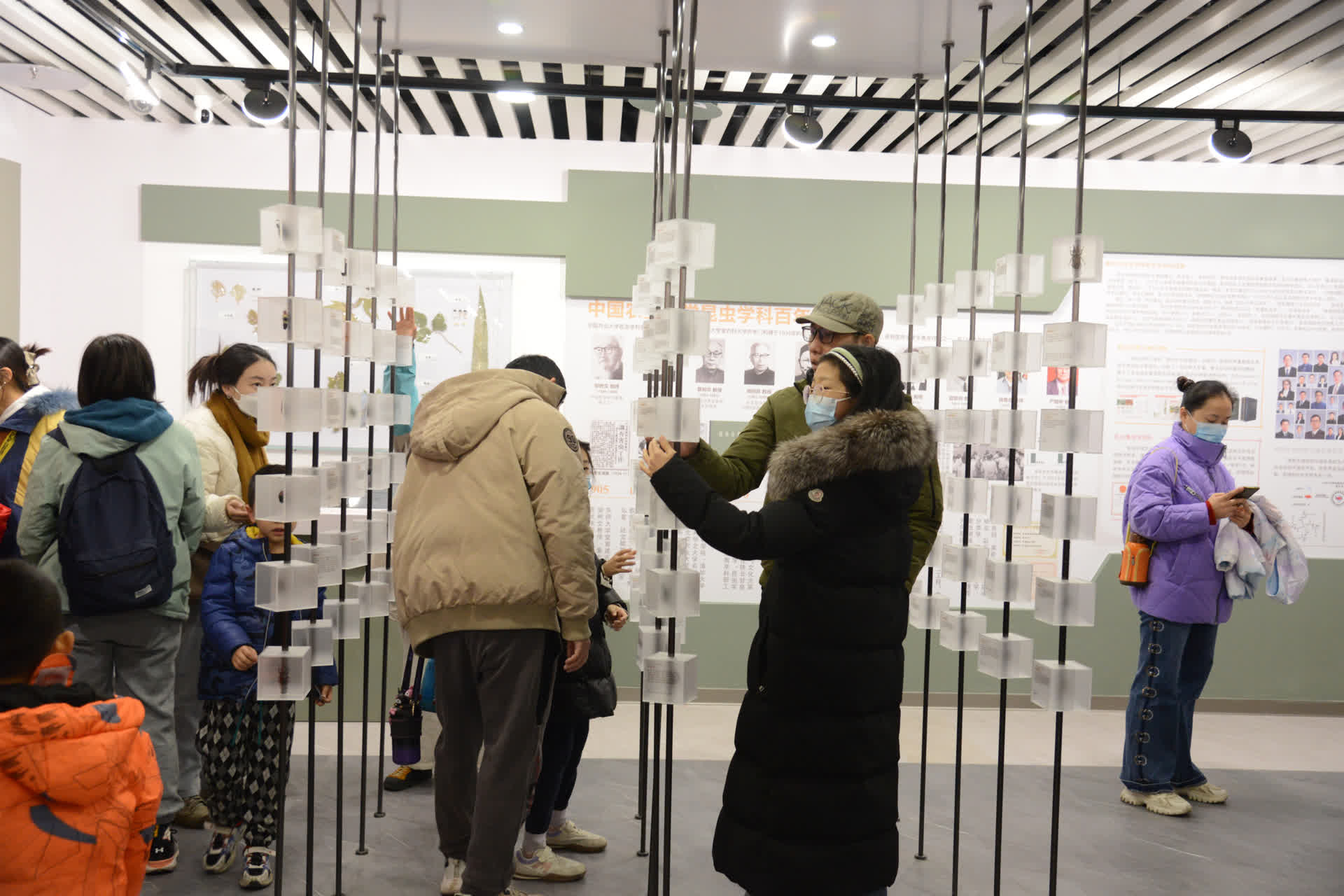 3月2日至3日,中国农业大学迎来新学期开放的首个周末,经过一个寒假的闭馆重整,该校昆虫博物馆开门迎客,两天参观人数超过1500人。“展厅内的明星展品是这只中华旌蛉,它是我国著名昆虫分类学家杨集昆在云南怒江首次发现的。”3日10时许,首场志愿讲解开讲,观众围在昆虫模型周围,听得津津有味。该馆志愿服务团团长杨皓然俯身,向小观众提问:“这个足有一米高的模型是三维打印技术生成的,你们猜它的昆虫原型有多大?”问题抛出后,大家纷纷猜答案。杨皓然向其中一位观众的本上盖了一个昆虫章,笑着揭秘:“你猜对了,一只中华旌蛉长度只有3厘米左右,大约是成人大拇指的一半长。”