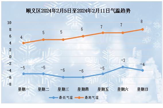 顺义区融媒体中心消息 记者从区气象局获悉,本周大部分时间是晴好天气,气温起伏不大。最高气温4℃至8℃,最低气温-6℃至-3℃。