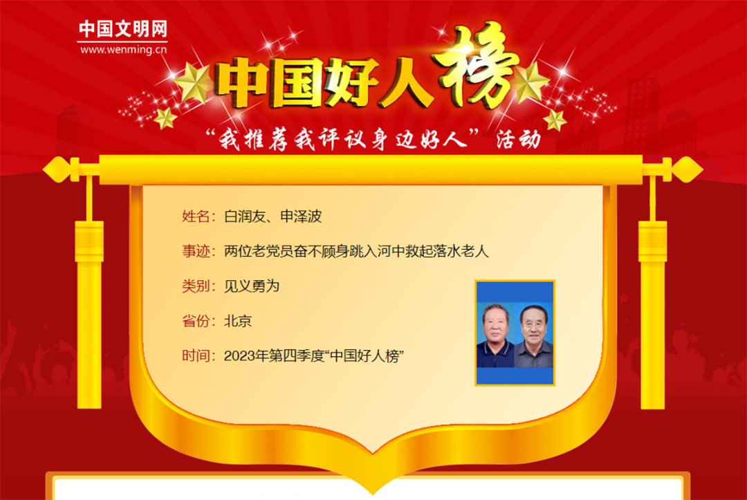 薛胜华、申泽岳上榜第一季度“中国好人榜”