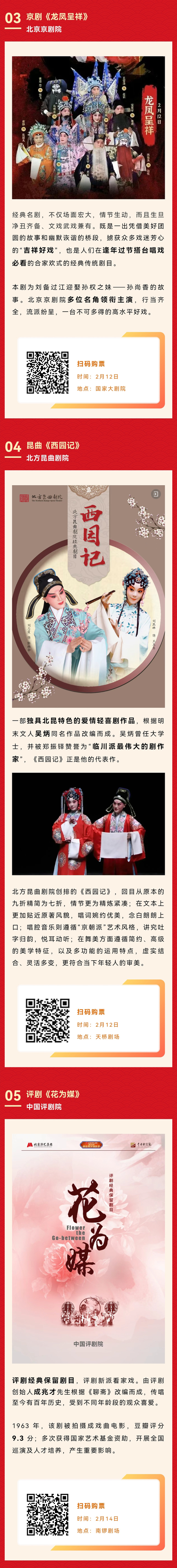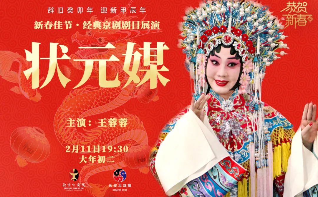 2月10日-17日大年初一到初八,在长安大戏院连续演出《状元媒》《白蛇传》《四郎探母》等十余台精彩大戏。让我们相约剧场,在春节期间享受京剧所带来的独特魅力。