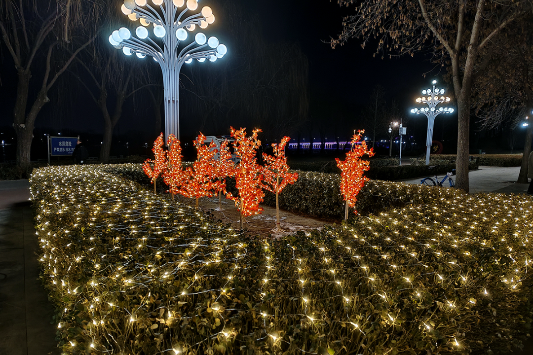 顺义区16家区属公园积极开展春节环境布置,设置龙形灯、诗词灯等1.3万盏灯饰,打造欢乐祥和的节日氛围。滨河森林公园人工岛打造一处别具一格的“龙耀潮白”龙年花灯小品,整体设计兼具古典韵味与现代元素,与公园山体、树木、灯光、色彩等相融合,绚丽多彩、气势如虹,为市民带来新奇的游玩体验。