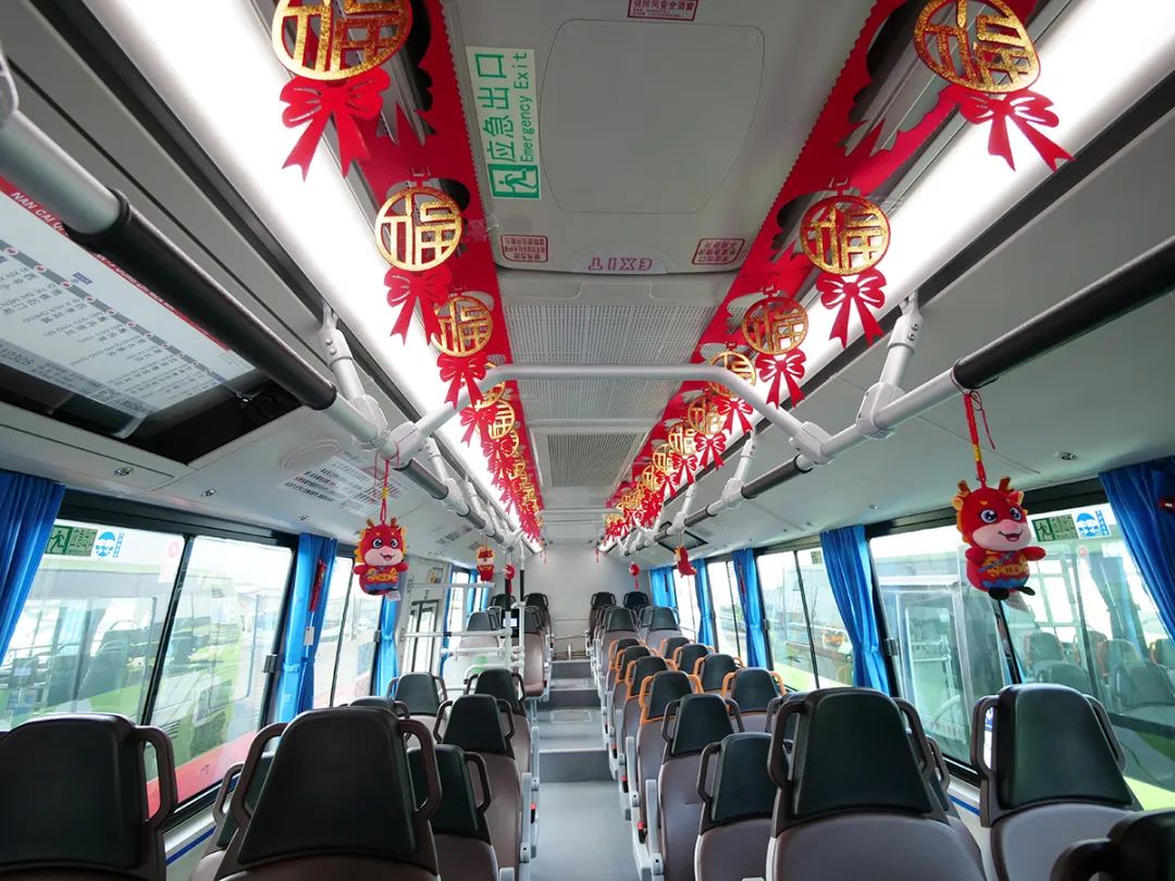 记者在北京骏马客运有限公司看到,独具特色的公交车上线,红色的灯笼、吉祥的龙元素、喜庆的福字、温馨的祝福语,处处透露着浓浓的年味儿。乘客陈女士说:“一上车就能感受到喜庆的氛围,仿佛离家更近了一步。”