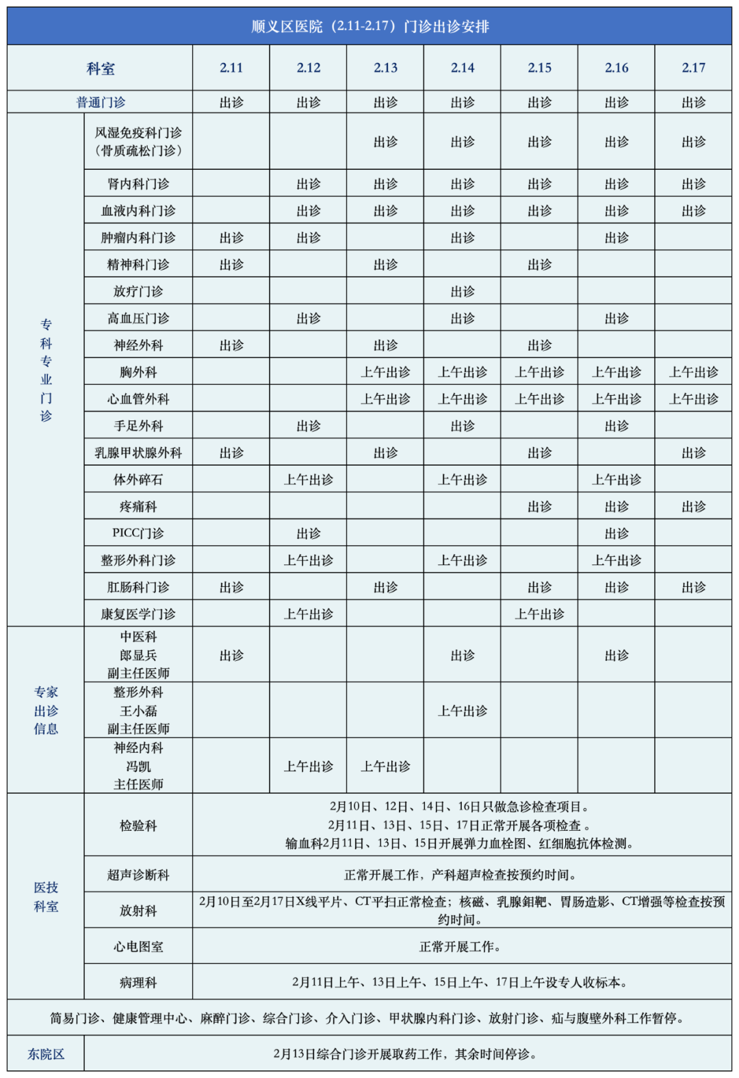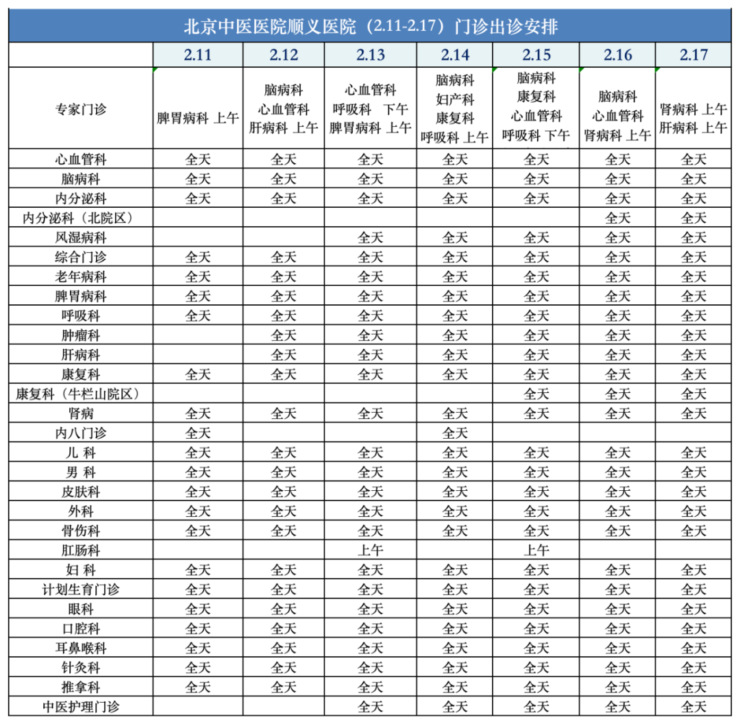 春节假期的出诊时间安排
