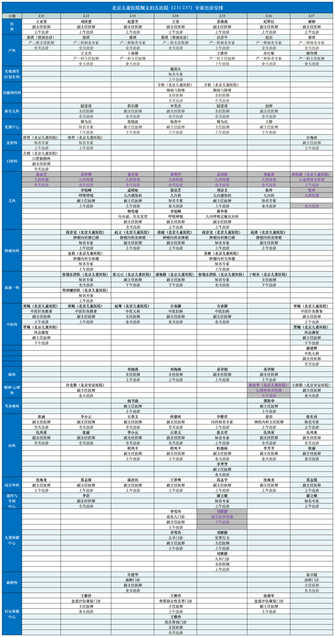 (以当天实际出诊为准)