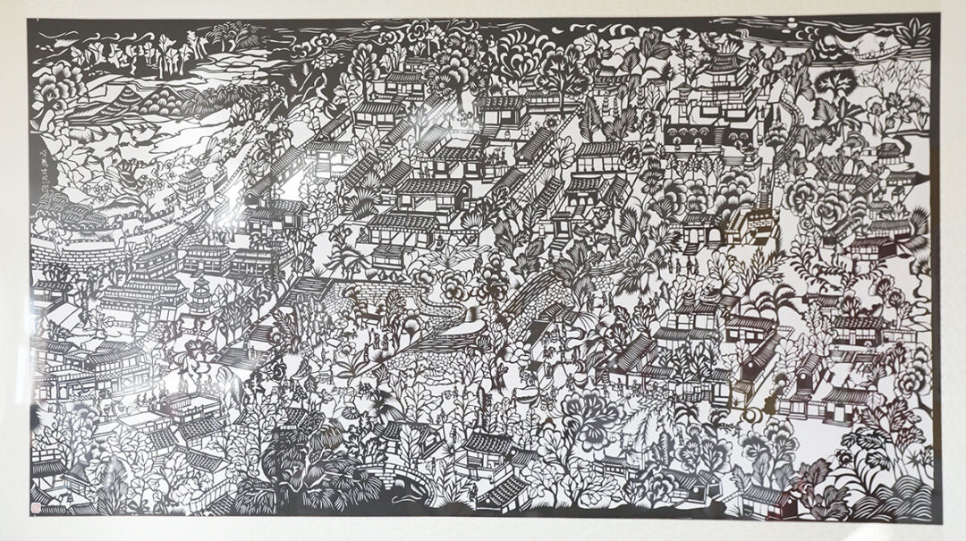 郝兰英的作品题材广泛,有身边事物、节气、劳动场景、历史故事等。在郝兰英家中悬挂着一幅《顺义古县衙形胜图》剪纸作品,长约2.4米、宽约1.5米,这是郝兰英用时近半年,在《顺义古县衙形胜图》书画作品基础上,按照剪纸的思路创作而成的。“我希望把顺义古县衙的盛景用更丰富多样的形式展现出来,让更多人认识和了解顺义厚重的历史文化内涵。”郝兰英对记者说。