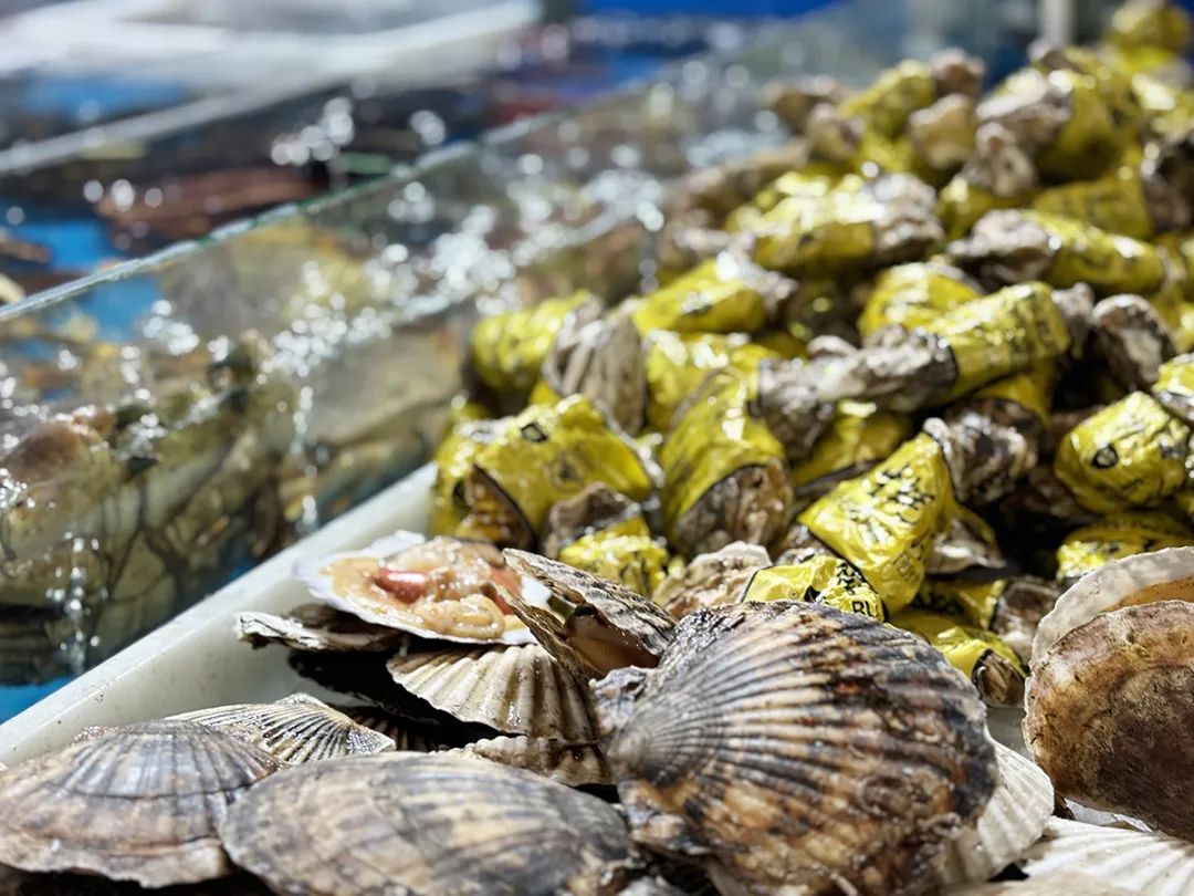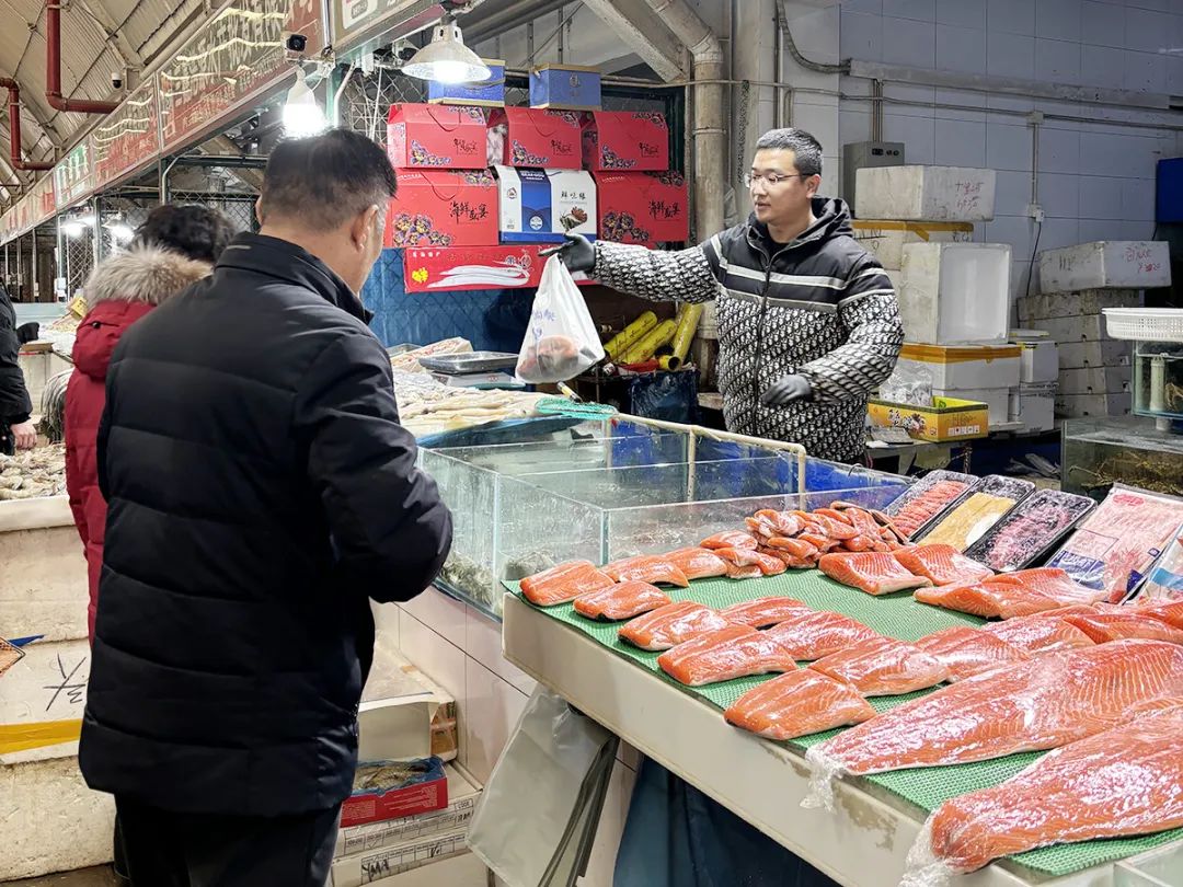 在石门市场海鲜交易大厅,水箱里满是鲜活海鲜,虾蟹、鲍鱼、生蚝等品类齐全、价格平稳,满眼都是活蹦乱跳的美味。一些海产品的年货礼盒更是受到大家的青睐。石门市场的海鲜年货大集也是热闹非凡,各种营养丰富的水产海鲜优质新鲜。“今年春节我们正常营业,每天都有五六百斤的新鲜海产品运来,种类非常丰富,保障大家节日期间能吃上优质的海产品。”商户林秀秀说。