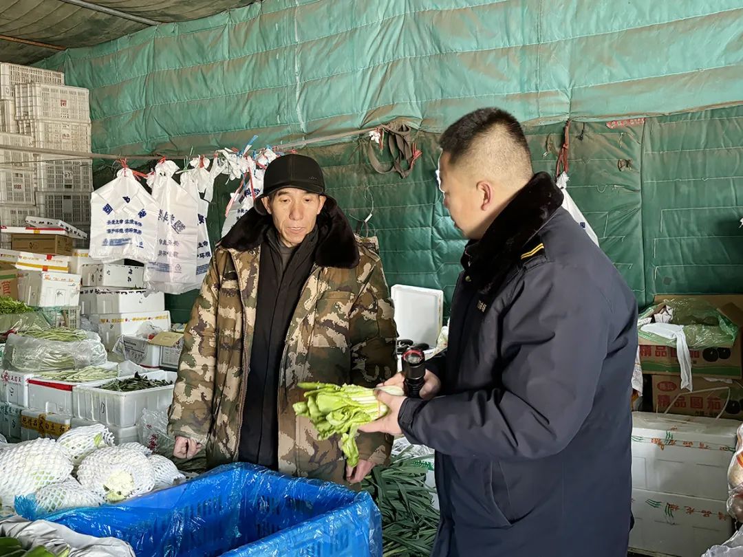 “今天的蔬菜价格怎么样?最近南方有雪,运输方面有影响吗?”“有两辆车从海南运来60多吨冬瓜,下午就到。”记者跟随顺鑫石门市场菜市管理部部长胡旭旺,来到他坚守了13个春节的岗位上。春节期间,他每天早早到岗,仔细向商户询问蔬菜的供应及价格情况,查看蔬菜储备库的供应情况,巡视市场交易环境、检查场内消防设施、用电安全等。