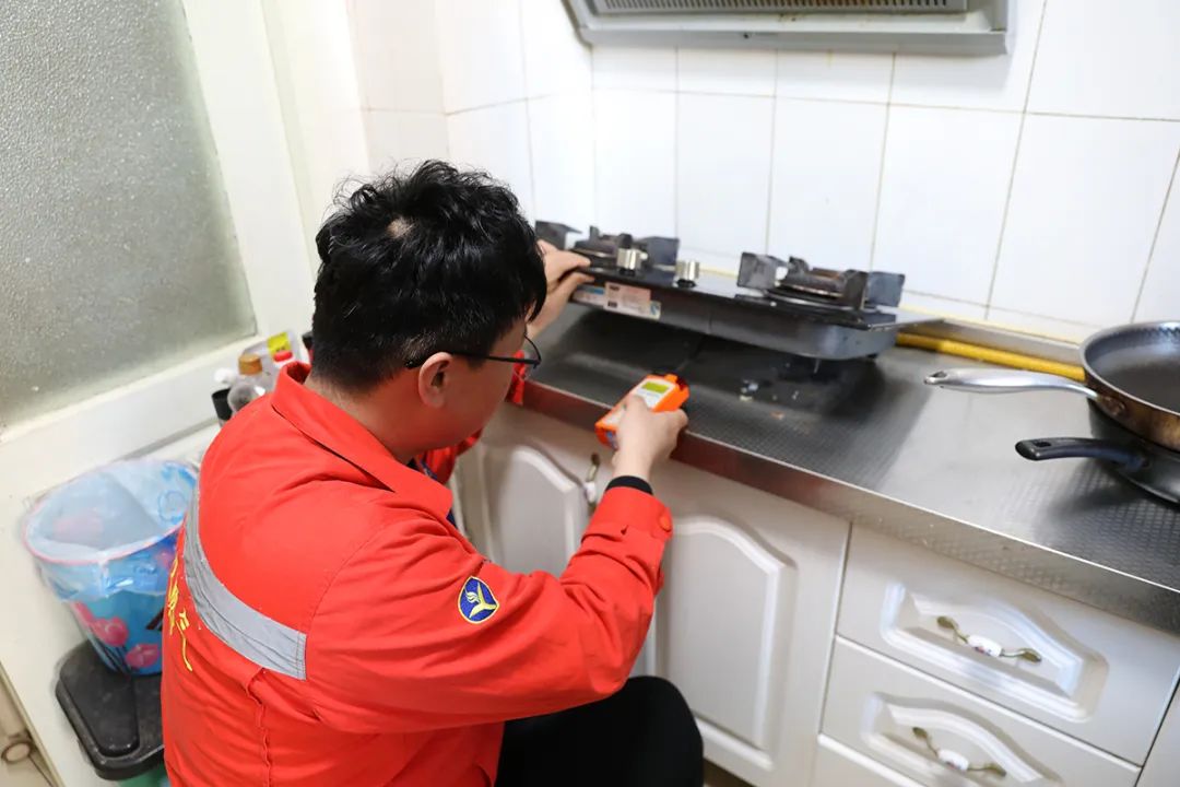 周新征检测用户家中燃气设备。