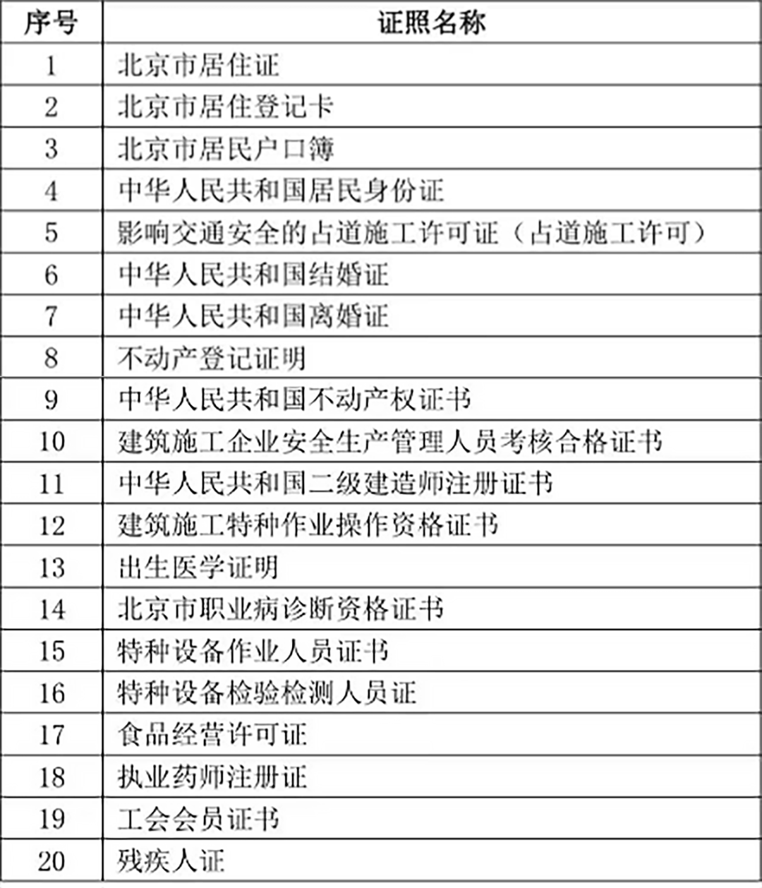 “京通”小程序可授权调取身份证、户口本、结婚证、出生医学证明、不动产登记证明、不动产权证书、执业药师注册证等共计20个电子证照。