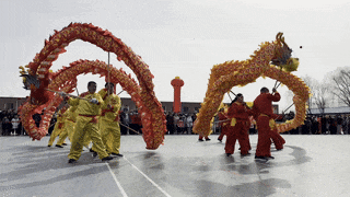 北务镇庄子舞龙队气势十足。