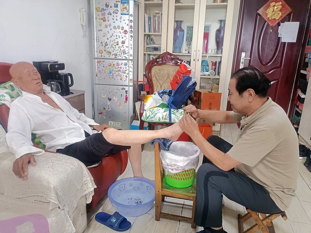 岳父的年龄越来越大,不便外出理发、修脚。为了更好地照顾岳父,他几次去理发店、足浴店“偷师”,还专门置办了全套的工具,让老人时刻干净、利落、舒适,90多岁的老人脸上总是洋溢着幸福的笑容。在他的影响下,家里的小孙子常说:“我以后也要像爷爷一样,孝顺太爷,孝顺爷爷奶奶、爸爸妈妈,做个懂事的好孩子!”