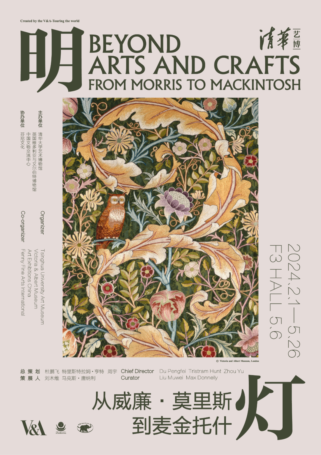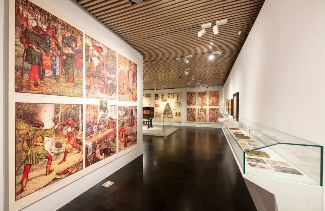 “明灯:从威廉·莫里斯到麦金托什”特展分为“开卷有艺”“纹艺青年”“饰艺向心”“艺美之瓷”“艺味其从”“现代建艺”六个展区,以英国维多利亚与艾尔伯特博物馆和清华大学艺术博物馆等机构和藏家的共计近200件展品为基础,展现了以工艺美术运动为核心发展阶段的书籍装帧、插画艺术、家居染织、金属工艺、陶瓷装饰、建筑设计等领域的成就。