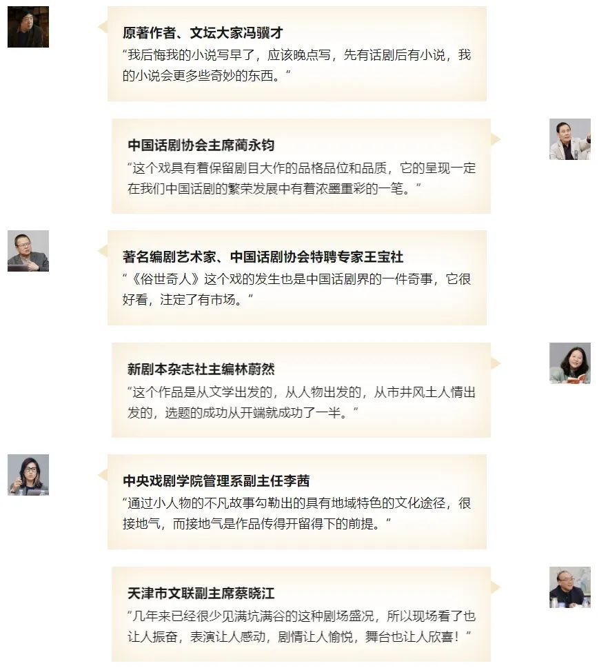 “我挺喜欢这出描写京剧后台的话剧,大家喜欢这出话剧,同样会爱上京剧……这就是他们这些京剧人作话剧的目的吧,我喜欢这出京味儿话剧。”