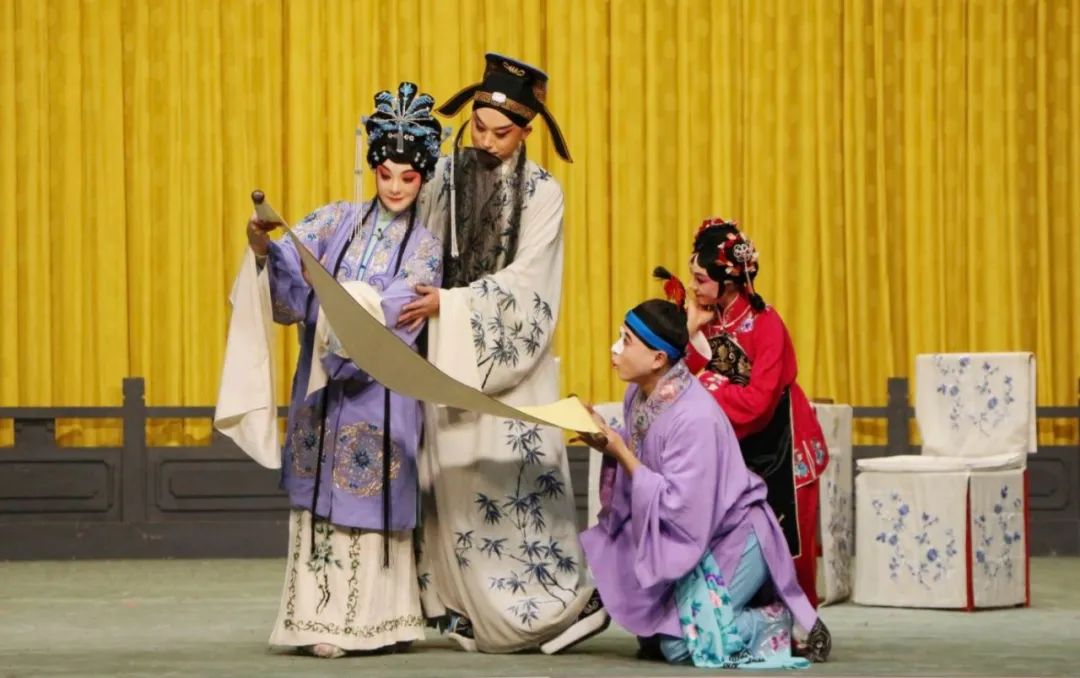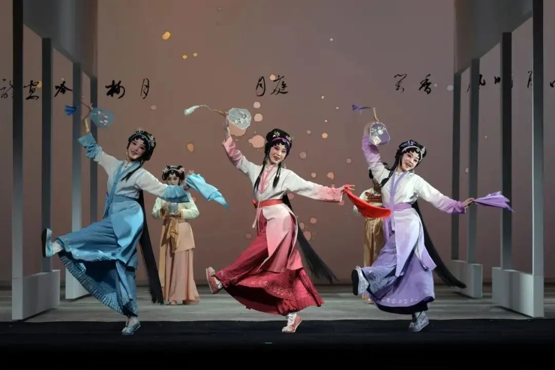 青春版·赣剧《红楼梦》唱词典雅、身段优美,诗歌吟唱、声乐共鸣,将戏剧的魅力演绎得淋漓尽致。本剧以《红楼梦》海棠诗社的“结社”“兴社”衰社”“散社”为叙事结构,营造了名副其实的诗意化青春氛围。作为一部“用诗的语言来讲述的剧目”,其独特的诗意之美,让观众沉醉其中。