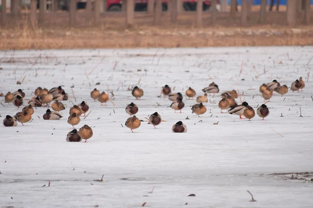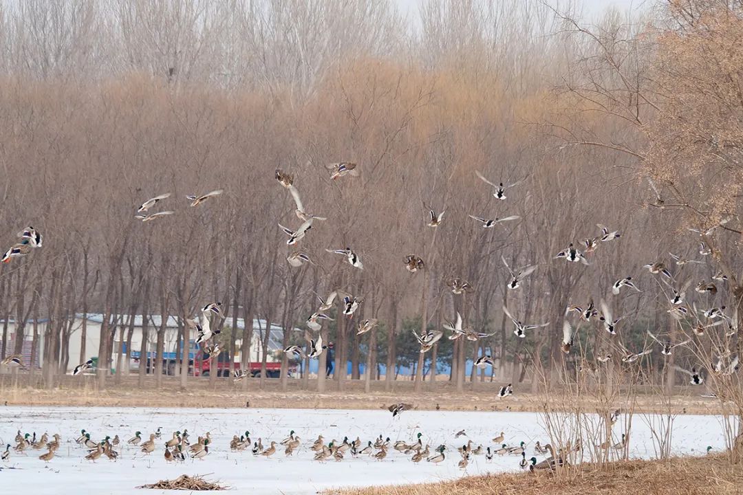 春风渐暖、冰雪消融,野鸭群抵达东郊公园(顺义园)。