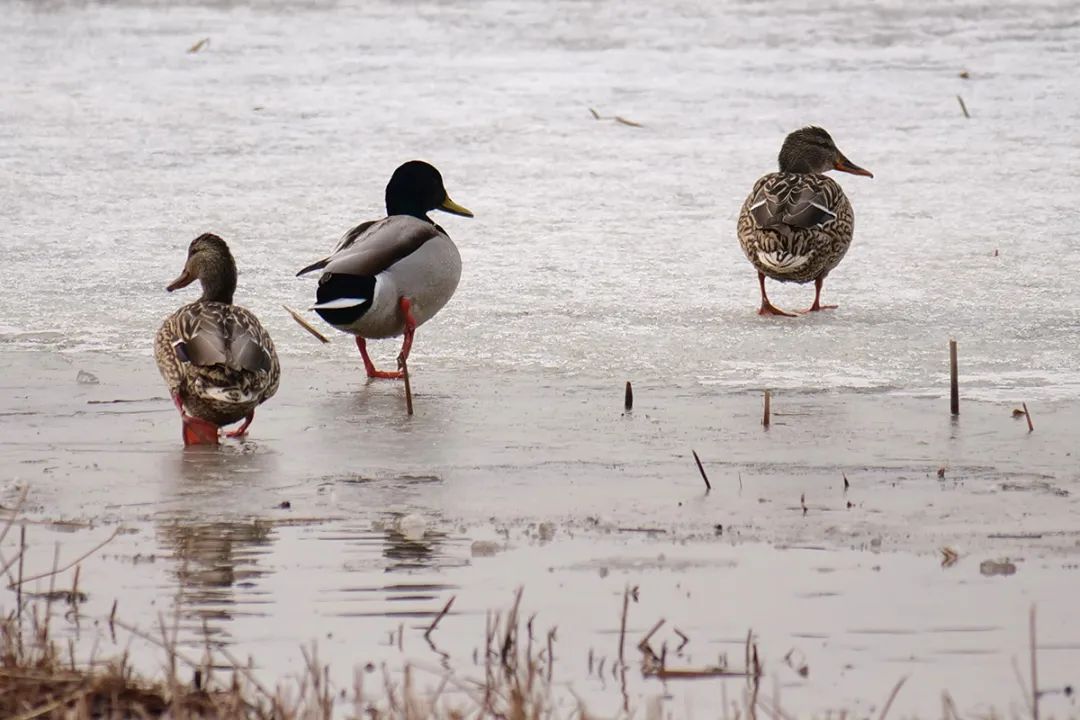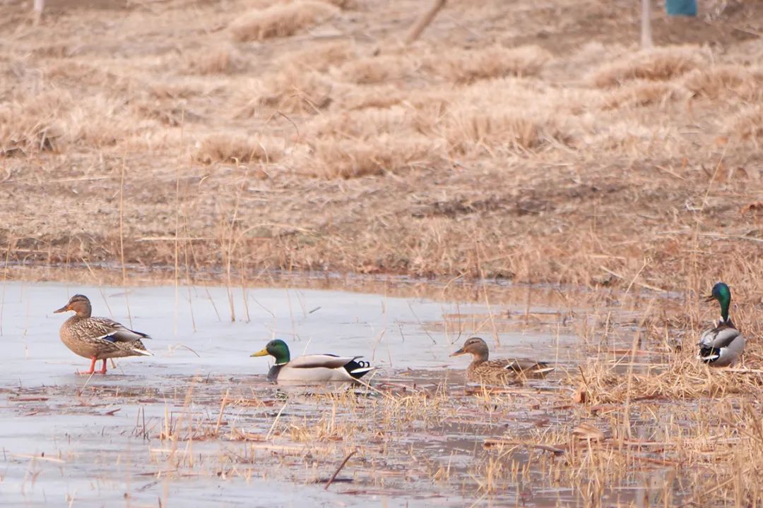 东郊公园(顺义园)目前迎来野鸭数百只,包括绿头鸭、麻鸭、斑嘴鸭、绿翅鸭等品种。一只只、一双双、一队队的野鸭时而展翅翱翔,时而觅食嬉戏,时而在枯荷间休憩,尽情享受着初春的暖阳,一声声鸣叫不绝于耳。湖水与成群的野鸭相映成趣,吸引了不少游客驻足观看,一派人与自然和谐共生的景象。