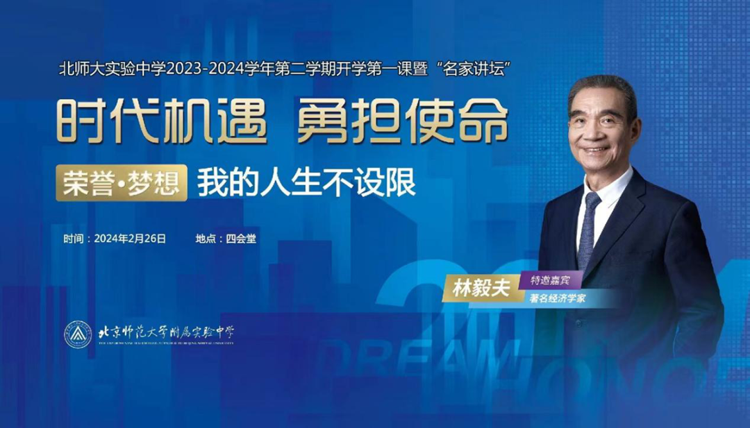 北师大实验顺义学校全体师生线上聆听了经济学家林毅夫教授带来的开学第一课。林毅夫是北京大学新结构经济学研究院教授、院长,北京大学南南合作与发展学院院长,北京大学国家发展研究院名誉院长。