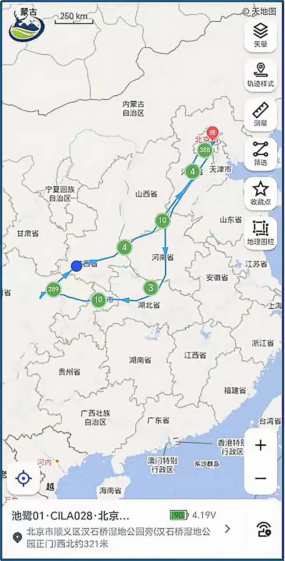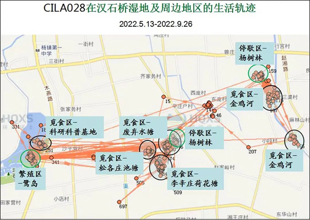 卫星追踪记录池鹭CILA028的运动轨迹。(资料图)