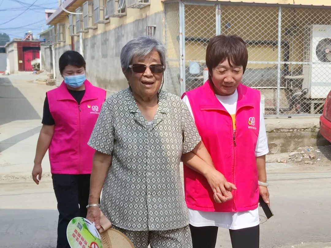 南彩村巾帼志愿服务队志愿者陪独居老人散步、聊天。(资料图)