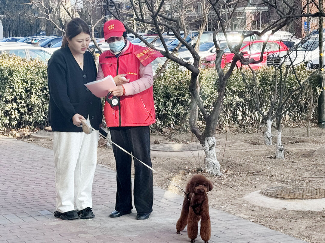 “小李,遛狗呢?要牵好绳子,随身带着拾便袋,记得定期带狗打疫苗。”“您放心,这些我都记着呢,文明养犬牢记心间。”9时,马坡镇中晟馨苑北区文明劝导队开始了一天的志愿服务,向社区居民宣传文明养犬知识,引导居民养成垃圾分类、文明停车等好习惯。