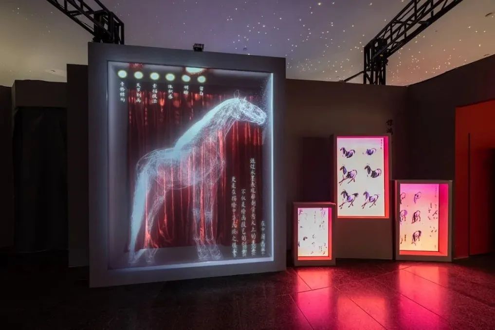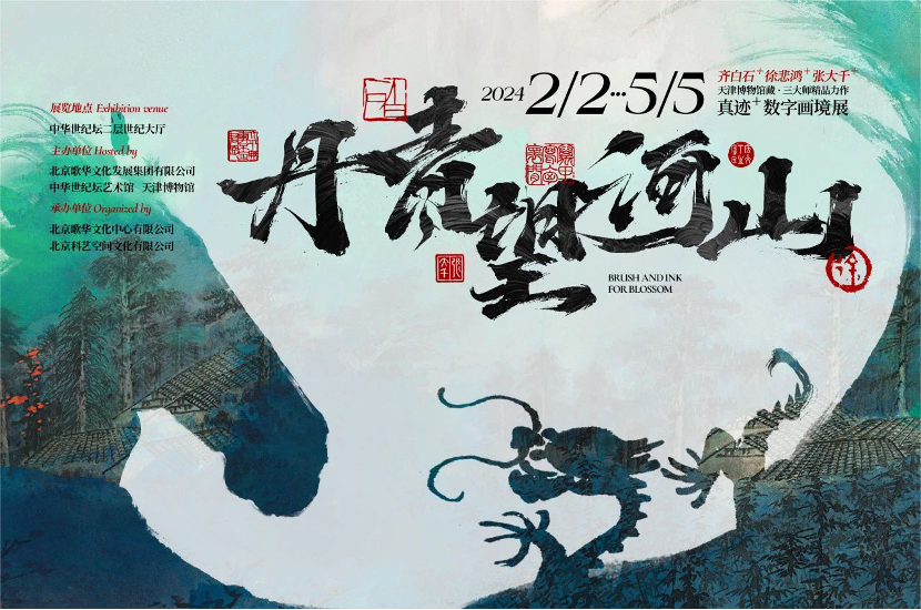 看徐悲鸿笔下的骏马狂奔在广阔的大地,惊了枝头的喜鹊,四散而飞;跟着张大千笔下的高士,卧游于山水瀑布之间,游走于浓墨重彩之境;走近齐白石理想生活的山居之中,体会文人世界渔樵耕读之乐。去中华世纪坛,在“丹青望河山”齐白石+徐悲鸿+张大千+天津博物馆藏三大师精品力作真迹+数字画境展览中,体会一幅幅书画真迹带来的历史积淀,也在一幕幕光影画境之中,沉浸式感受丹青艺术的科技之美。