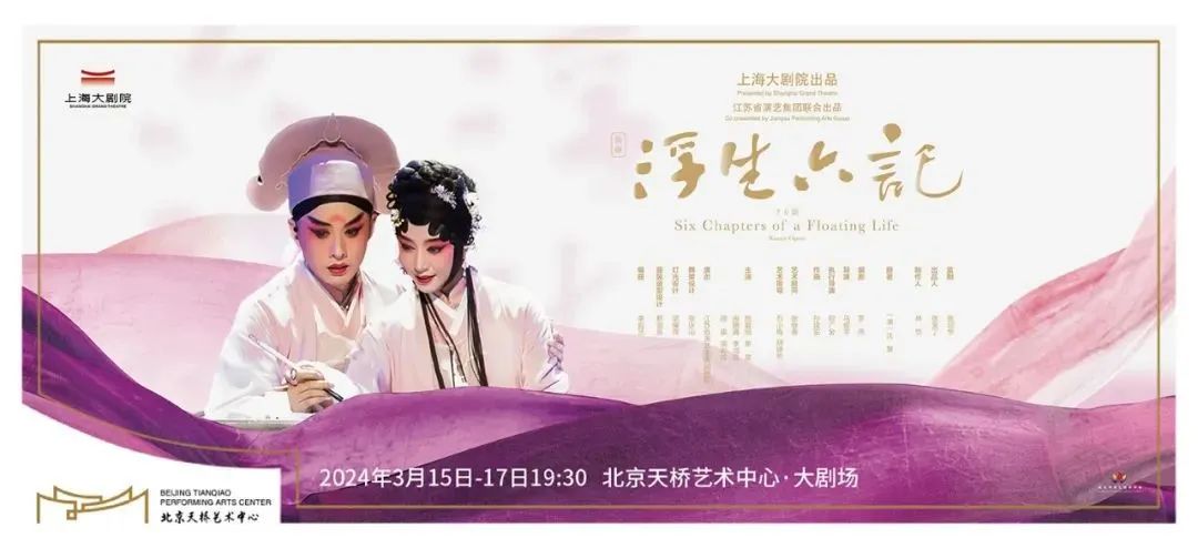 2024年3月15日起,昆曲《浮生六记》将以原班人马首度北上,在北京天桥艺术中心连演三场。梅花奖获得者、江苏省演艺集团昆剧院院长施夏明,和梅花奖获得者、南京艺术学院教授单雯再次聚首,搭档演绎沈复、芸娘,以舞台上的须臾,展现人生的无穷况味。