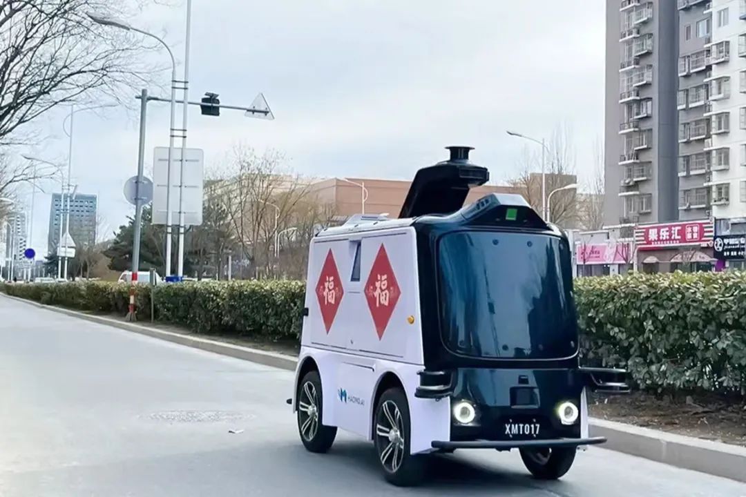“毫末小魔驼2.0”行驶在配送路上。