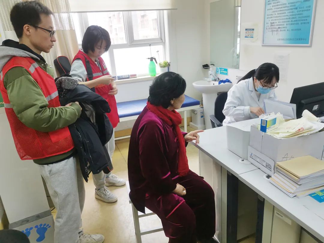 社区工作人员送刘井茹到旺泉卫生服务中心检查。