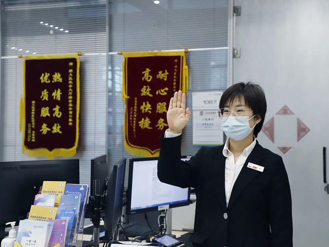 窗口工作人员统一着装,举手示意,便于办事人快速找到办事窗口。