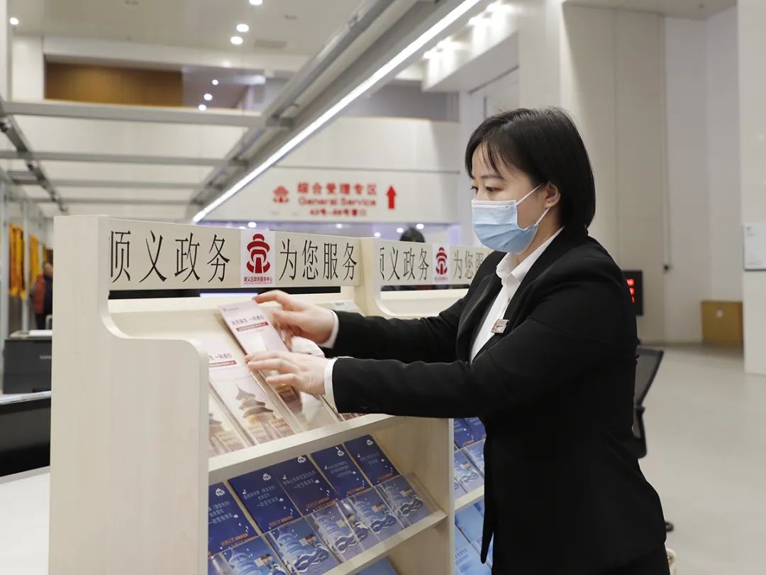 大厅工作人员摆放相关政策宣传折页,方便办事人随时翻阅。