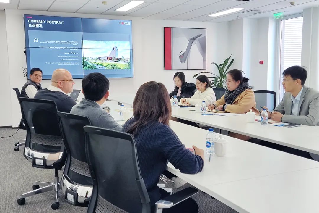 区商务局相关工作人员与区内外贸企业开展交流座谈。