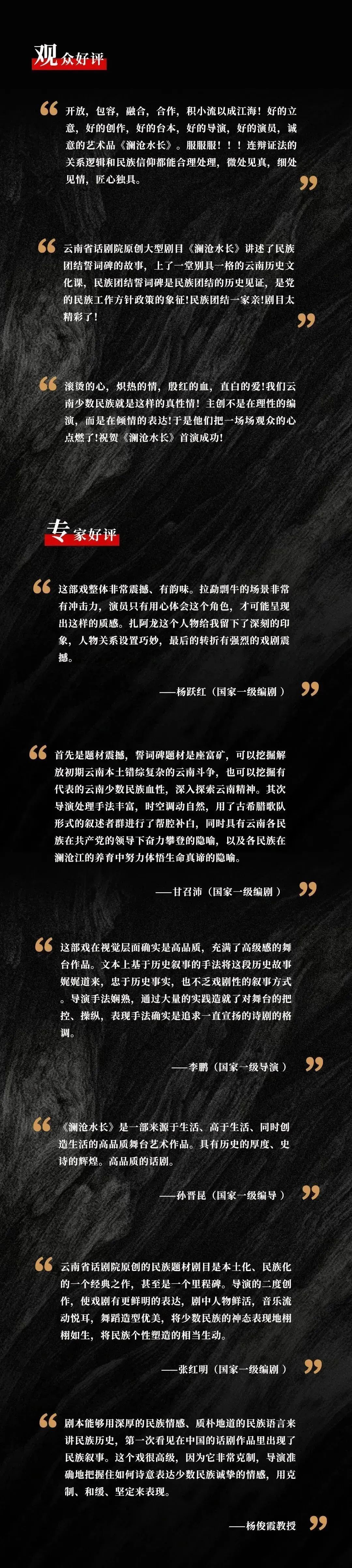 以第一位在云南民族团结誓词碑上签名的傣族领袖召存信百年之后的灵魂追问为线索,以养育他和云南各族人民的母亲河澜沧江作为民族团结进步事业的见证者来对话。用召存信的老年和青年两个形象穿插叙事,重新审视和回顾“民族团结誓词碑”历史事件,以诗意现实主义的风格提炼澜沧江水为全剧“民族团结进步事业恒久悠长”的象征意象,再现血雨腥风的斗争下,边疆各民族如何最终做出“团结一心跟共产党走”的重大抉择。