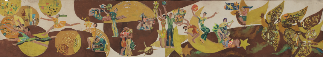 壁画《科学的春天》设计稿 肖惠祥 纸本水粉 21cm×108cm 1979年