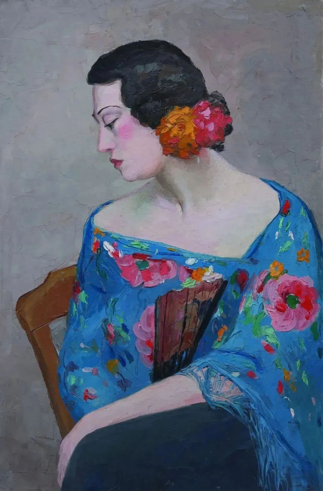 《戴花执扇的女人》 潘玉良 布面油画 90cm×59cm 年代不详