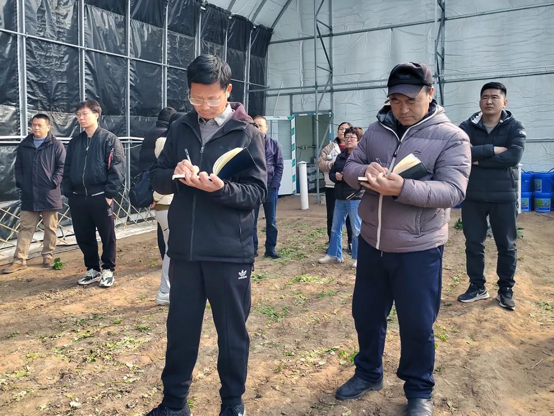 “温室积温能到多少?”“水怎么循环?”“效果怎么样,产出比是多少?”大家一边用本子记录刘雪萍讲的感受和经验,一边用手机在温室里拍照,并不时提问。