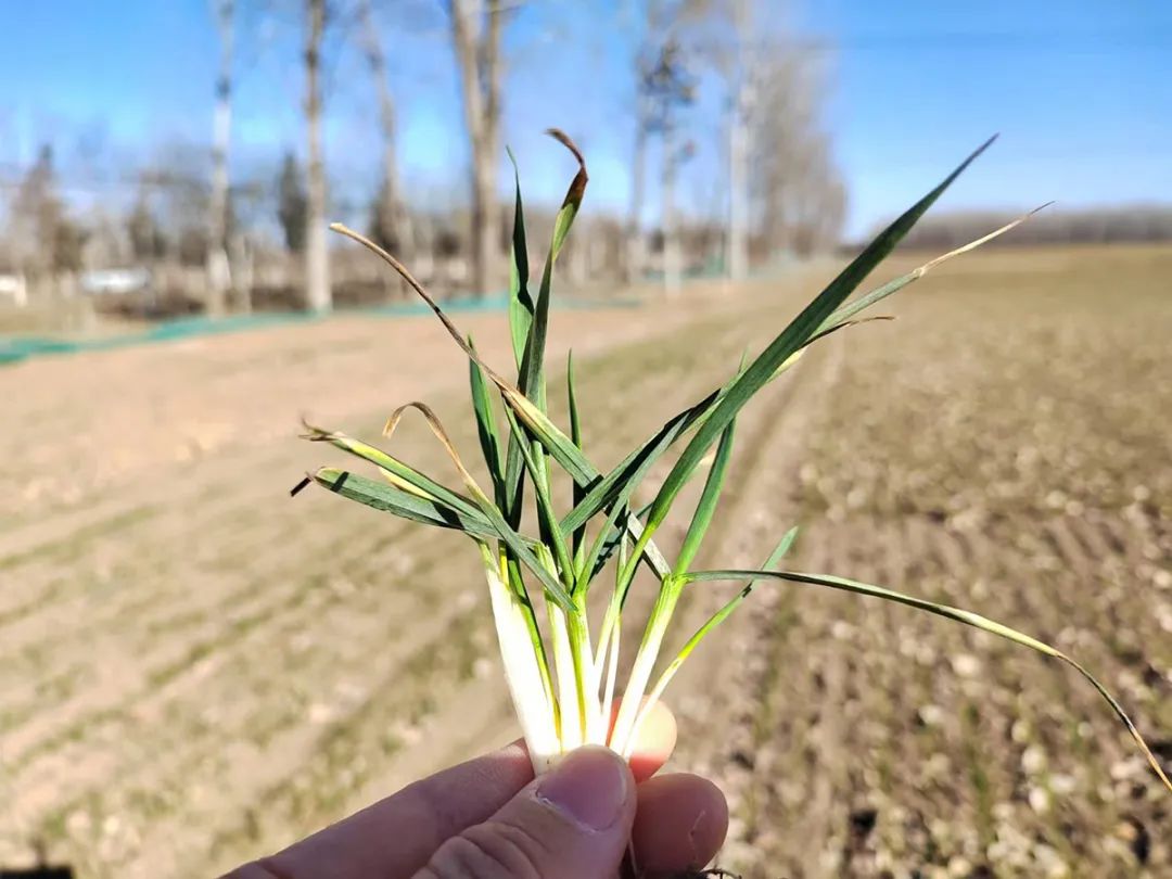 随着气温上升,田间小麦越发萌动。从前王各庄村麦田取出的小麦样本可以看到,小麦根茎饱满粗壮,新叶刚刚萌出。张爱军告诉记者,判断小麦是否开始返青需满足两个条件:新叶需生长至1至2厘米,每一地块过半麦苗都已达到此标准。