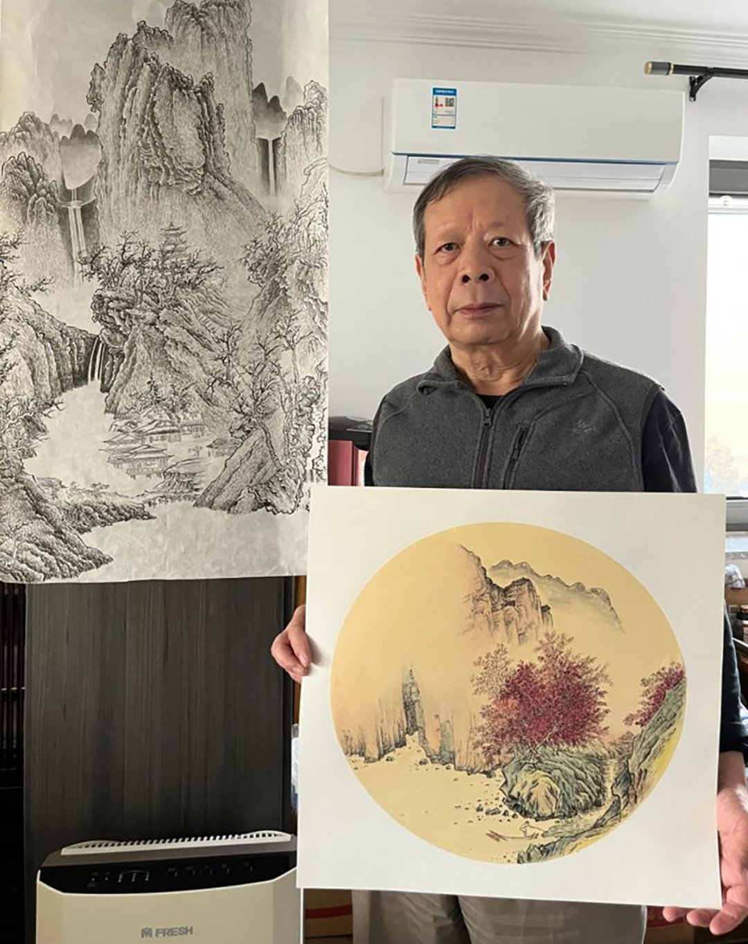 张树基展示国画作品。