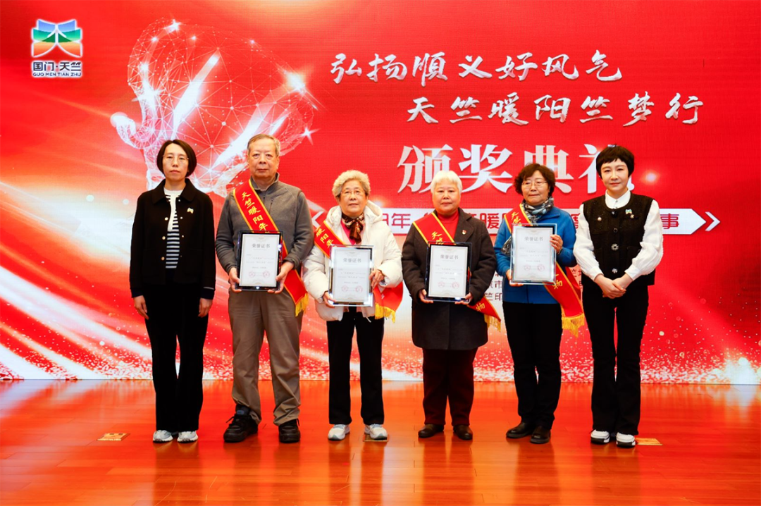 张树基(左二)和王秀园(左三)获得2023年助人为乐“天竺暖阳”年度榜样人物称号。