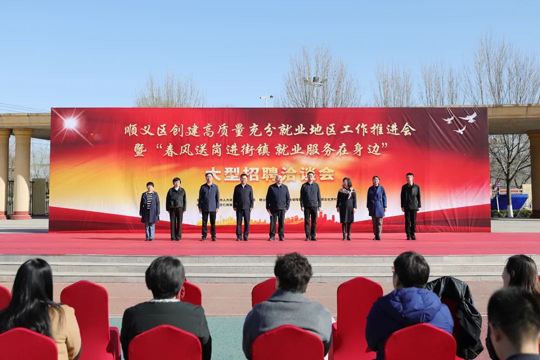顺义区融媒体中心消息 3月19日,顺义区创建高质量充分就业地区工作推进会暨“春风送岗进街镇,就业服务在身边”大型招聘洽谈会在仁和文体广场举行,这是顺义区2024年首场大型招聘洽谈会。市人力社保局副局长吴晓军、副区长杜跃参加。