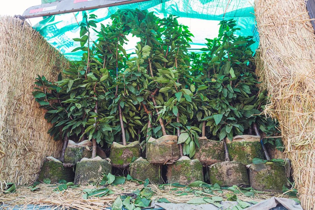 3月18日,在山东省泰安市取苗现场,樱桃树移苗工作正如火如荼地进行。随着一句短促有力的“‘龙湾质造 天路二期’北线出发!”7500棵樱桃树苗满载浓浓的情意启程。