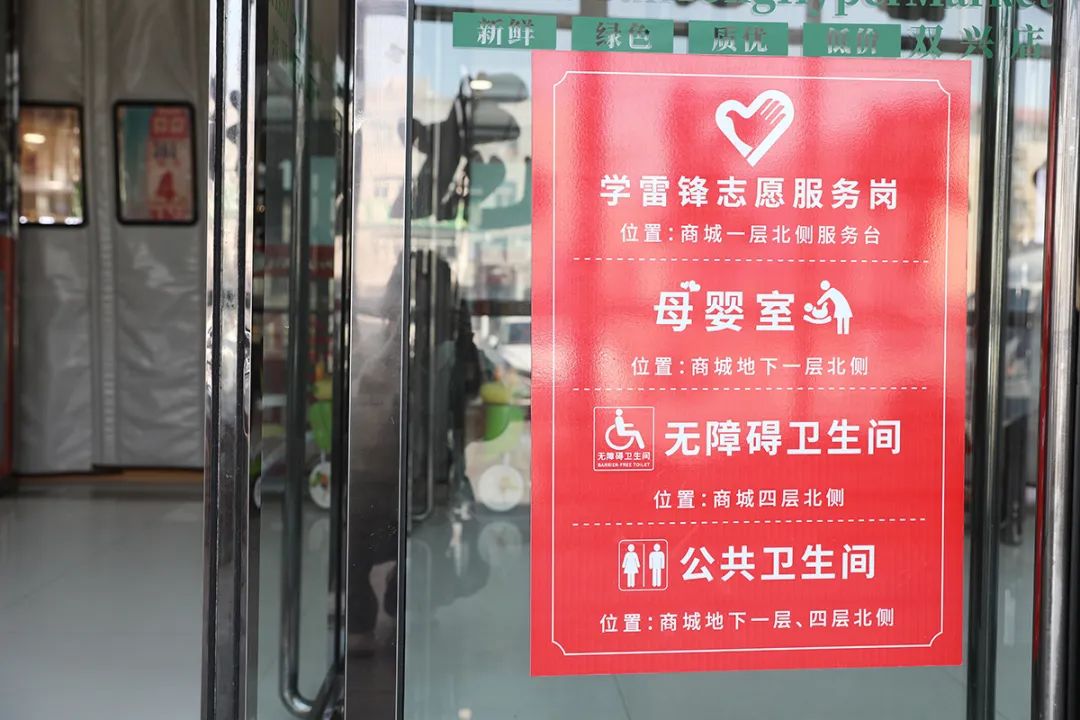 鑫海韵通双兴大卖场设置的公益广告和指引标识。