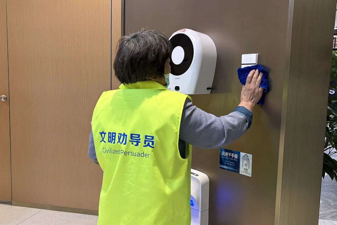 “从早上8点到晚上8点,劝导员轮流值班,希望通过我们的行动,能够带动更多人参与全国文明城区创建,共创文明舒适的消费环境。”国泰百货办公室主任王海燕说。